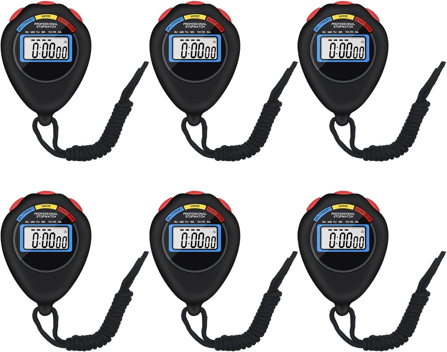 6 Pack Multi-Function Electronic Digital Sport Stopwatch Timer, Large Display with Date Time and Alarm Function,Suitable for Sports Coaches Fitness Coaches and Referees(Black)