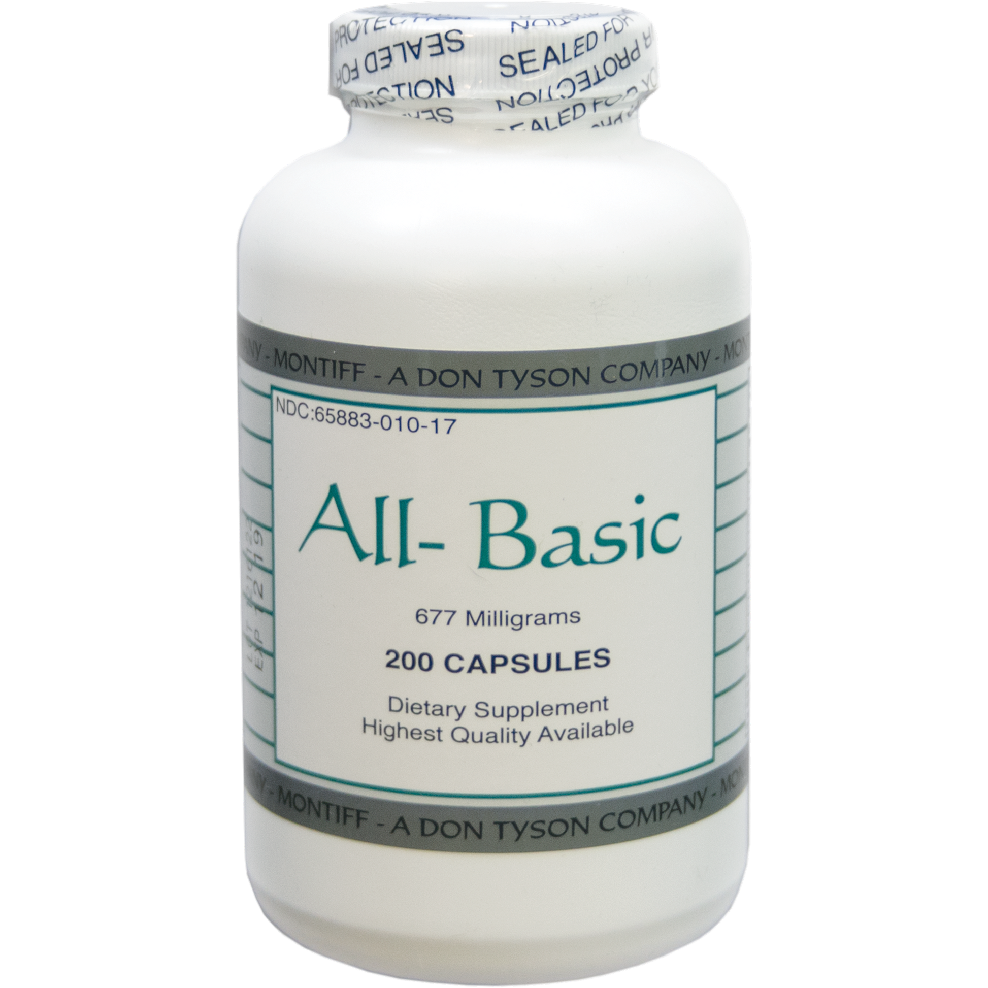 All-Basic consists of a unique blend of 20 of the highest quality L-Crystalline singular amino acids, plus precursor Ornithine--Ketoglutarate. It is recommended for periods stress when additional amino acids are required by the body for tissue and cell growth and repair. All-Basic can also be used for general maintenance.*