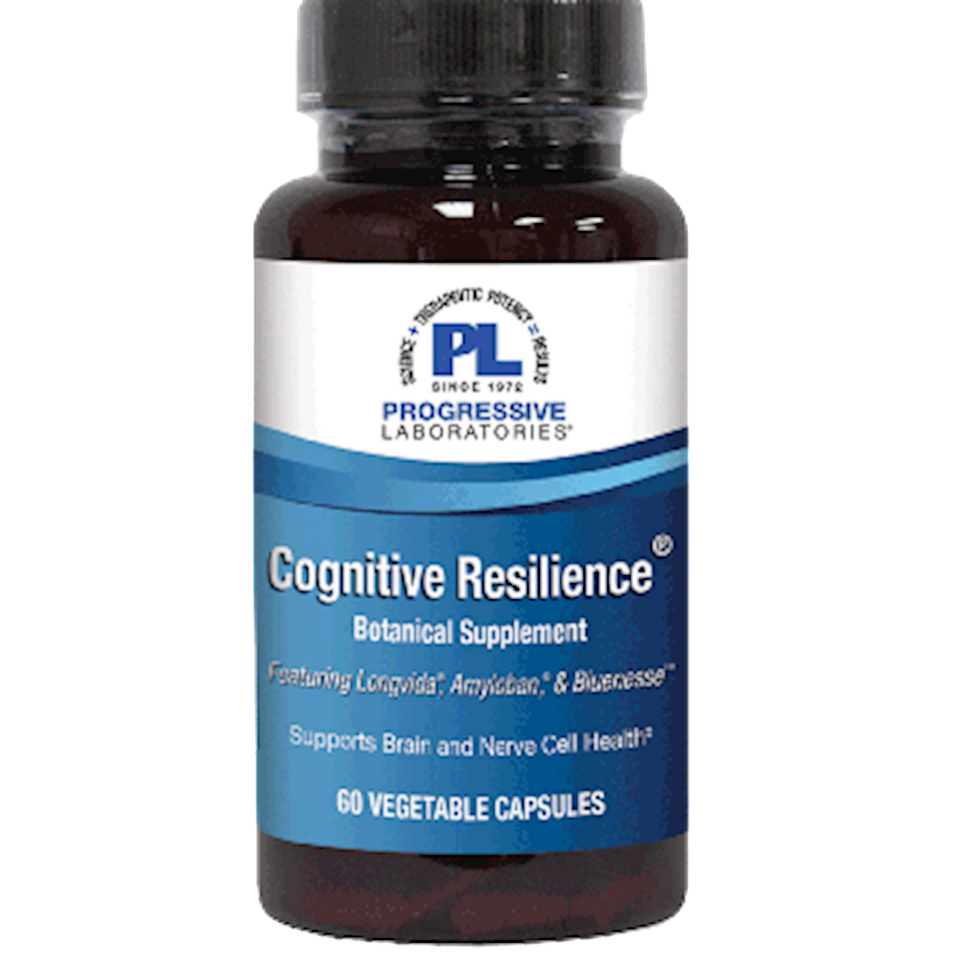 Cognitive Resilience from Progressive Laboratories is a proprietary formula that is a unique blend of botanicals designed to support optimal cognitive performance and neurodegeneration particularly around learning, memory, focus, concentration and attention.* Cognitive Resilience features several unique, branded and clinically studied botanical ingredients used in Ayurvedic medicine and medicinal mushrooms: Longvida Amyloban Bluenesse Bacognize Provinols
