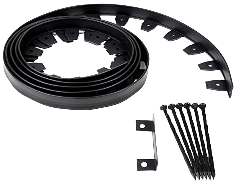 - The pack includes a 20' coil of landscape edging, (6) 8" spiral spikes and (1) connector