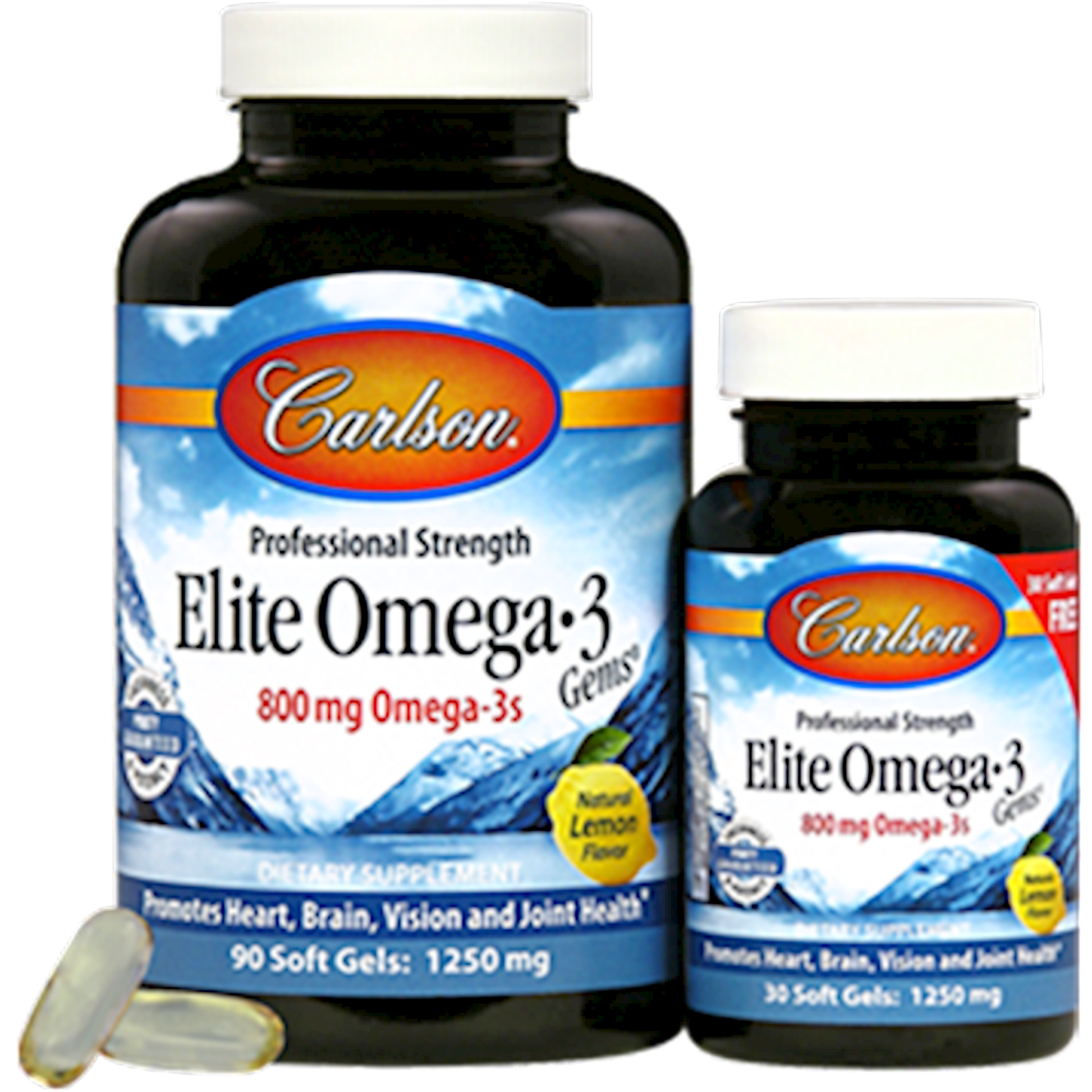 Carlson Elite Omega-3 Gems is a professional-strength fish oil concentrate. A single serving provides 1,600 mg of omega-3s, including the important omega-3s EPA and DHA, which promote heart, brain, vision, and joint health.* To ensure maximum freshness, Elite Omega-3 Gems is closely managed from sea to store. Carlson Labs sources the highest quality, deep, cold-water fish using traditional, sustainable methods. And like all Carlson omega-3s, freshness, potency, and purity are guaranteed. Promotes heart, brain, and vision health* 1,600 mg of omega-3s per serving | Lemon-flavored soft gels Wild caught and sustainably sourced IFOS and IGEN non-GMO certified Freshness, potency, and purity guaranteed