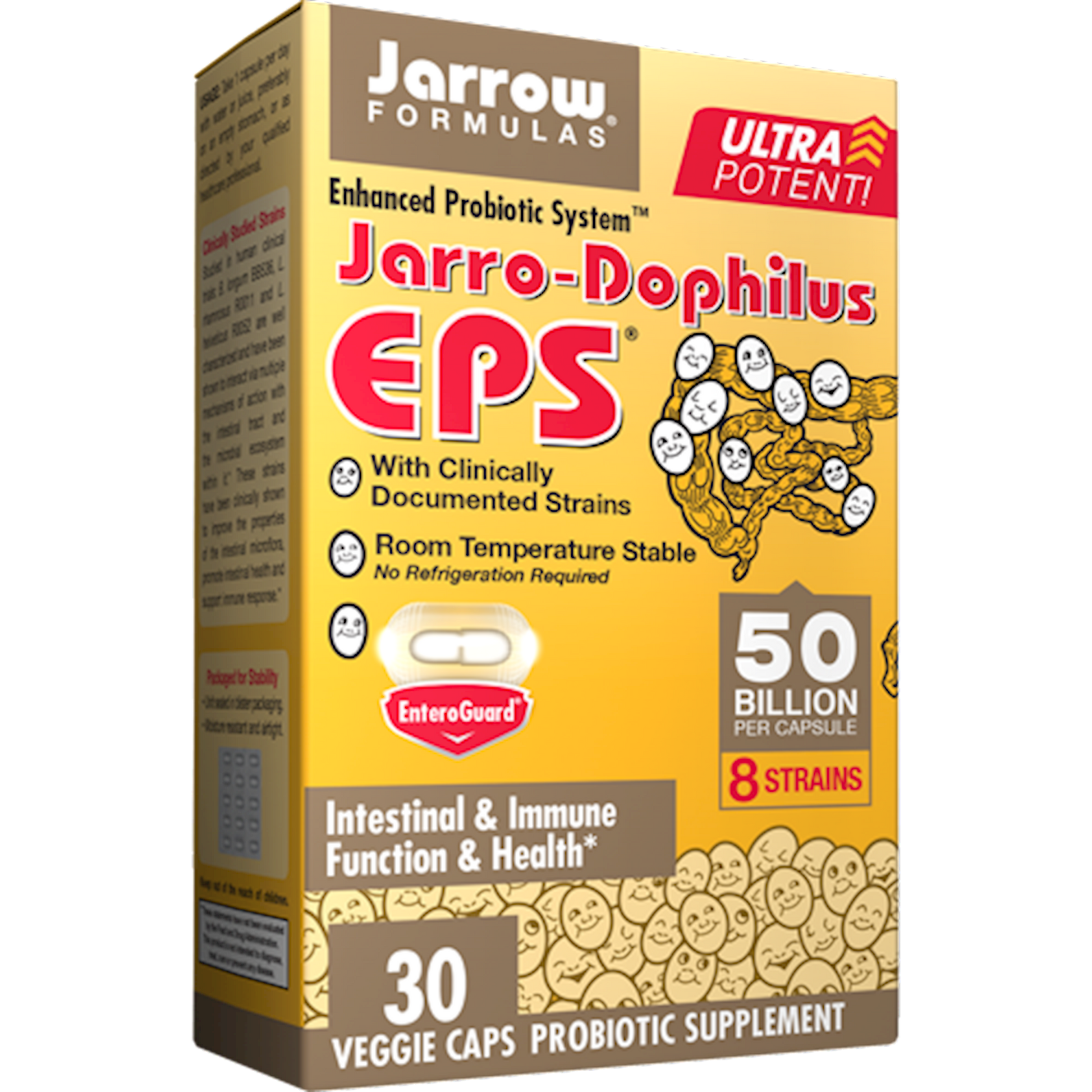Serving Size: 1 Vegetable Capsule Servings Per Container: 30 Disclaimer Amount Per Serving Probiotic Bacteria Blend 50 Billion Viable Cells (Minimum) Composed of the following strains 50 Lactobacillus rhamnosus R0011 Lactobacillus helveticus R0052 Pediococcus acidilactici R1001 Lactobacillus casei R0215 Bifidobacterium longum BB536 Lactobacillus plantarum R1012 Bifidobacterium breve R0070 Lactococcus lactis subsp. lactis R1058 Other ingredients: Potato starch, magnesium stearate (vegetable source) and vitamin C (antioxidant), Vegetarian capsule consists of hydroxypropylmethylcellulose and an aqueous-based enteric coating