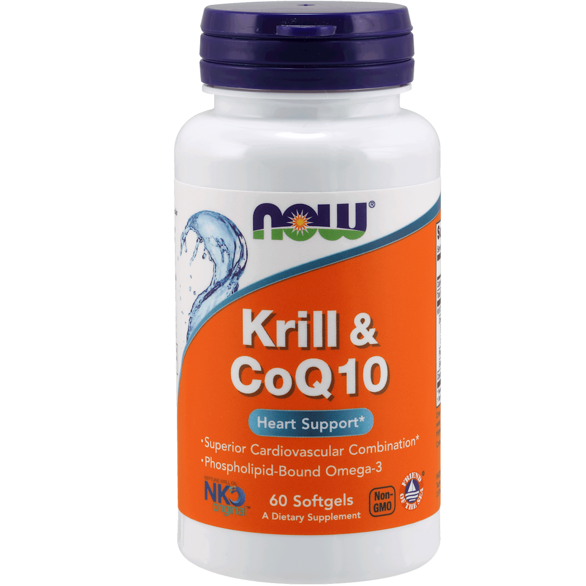 NOW Krill & CoQ10 Softgels combine two of the most prominent and effective nutrients for cardiovascular health in one convenient supplement.* CoQ10 is a vitamin-like compound thats clinically demonstrated its ability to support heart health through its effects on cellular energy production.* Krill oil has naturally occurring omega-3 essential fatty acids, which are well-known for their vital role in cardiovascular health.* Together these two nutrients form a powerful combination supplement for the support of normal, healthy, cardiovascular functions.* Neptune Krill Oil is manufactured under strict quality control standards. It is tested to be free of potentially harmful levels of contaminants (i.e. mercury and other heavy metals, PCBs, dioxins, and other contaminants). NKO is a registered trademark of Neptune Technologies & Bioressources Inc. Quebec, Canada. US Patent No.: 8,278,351. Superior Cardiovascular Combination* Phospholipid-Bound Omega-3
