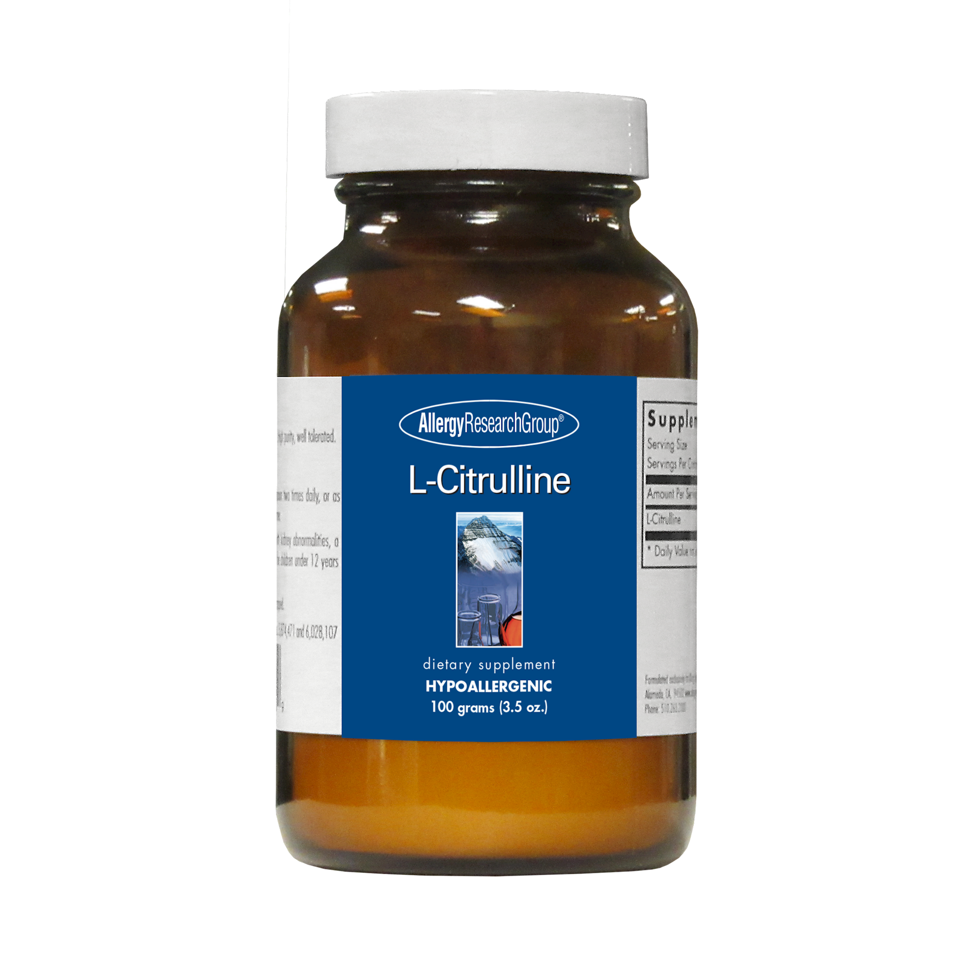 L-citrulline, like L-arginine and L-ornithine, is involved in the metabolism of ammonia waste in the urea cycle, and in the vasodilation pathways.* Carbamoyl phosphate is converted to citrulline in the ornithine carbamoyltransferase reaction, and when endogenous supplies of ornithine carbamoyltransferase are insufficient, supplemental L-citrulline may be useful.* Free form amino acid, high purity, well tolerated.