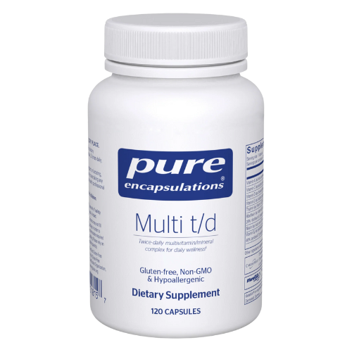 Our Multi T/D formula is a multivitamin/mineral supplement that provides nutrient essentials to help support daily wellness.
