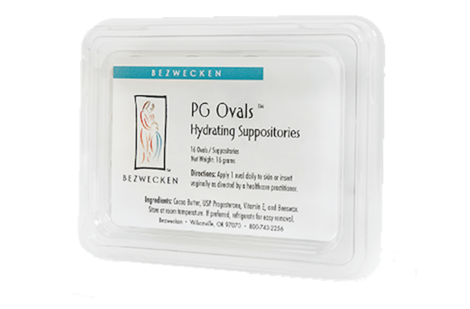 Ingredients: Cocoa Butter, USP Progesterone,Vitamin E, and Beeswax. Progesterone content: about 20 mg per oval suppository.