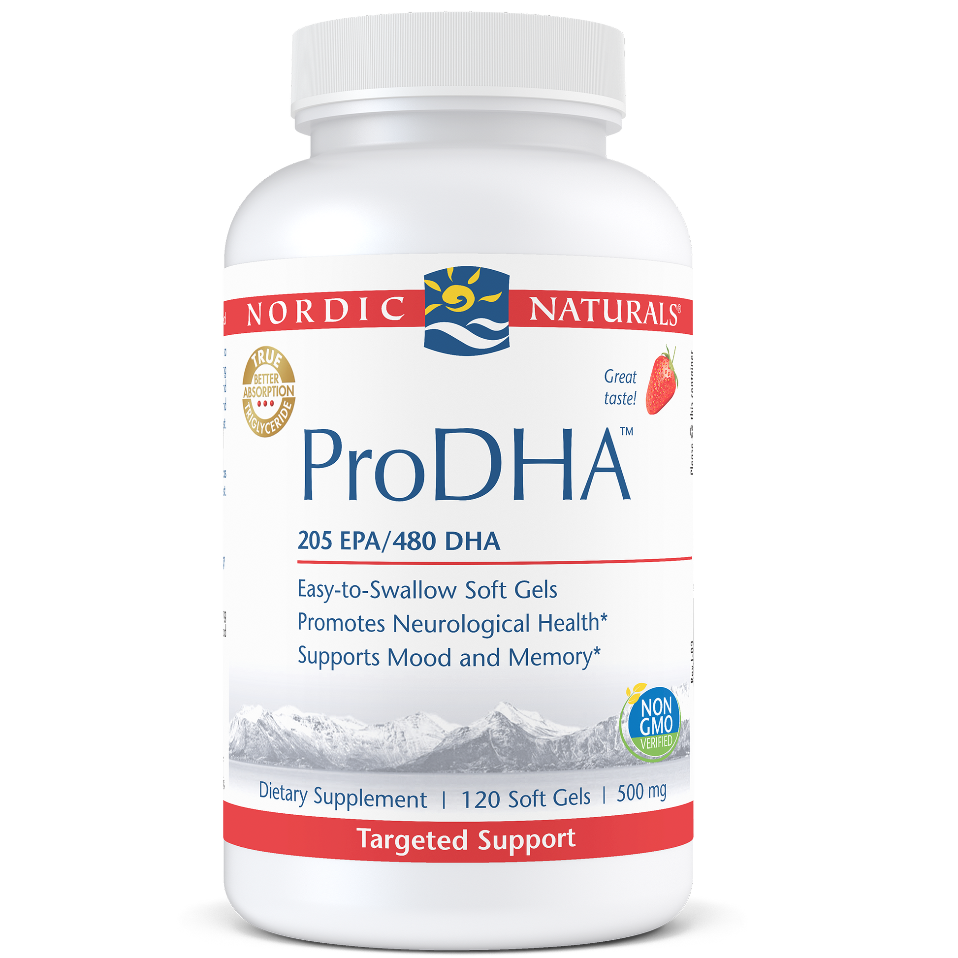 ProDHA from Nordic Naturals is a high-potency formula perfect for children, teenagers, and pregnant women. DHA is an essential nutrient for brain health, and original research on ProDHA has shown that it supports a healthy mood, structural integrity of the central nervous system, and cognitive function.* It has also demonstrated neurological enhancement, and neuro-synaptic improvement with exercise.* Supports learning, memory, and mood* A highly concentrated DHA formula for enhanced neurological function*