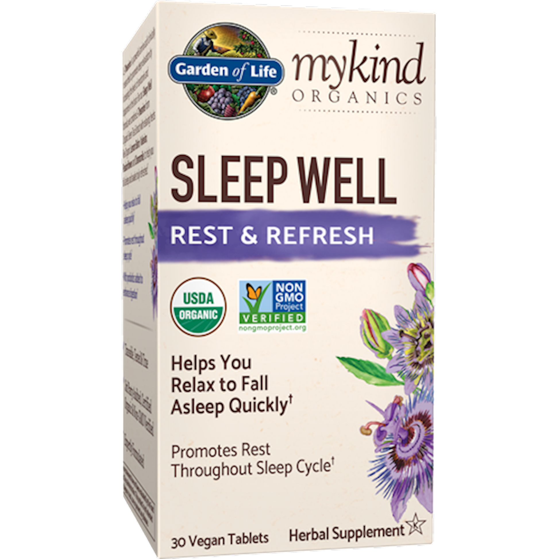 If you need help relaxing so you can fall asleep, mykind Organics Sleep Well formula could just be the ticket.* L-Theanine is a powerful amino acid clinically researched to help support deep relaxation by increasing the levels of serotonin and dopamine in the brain. Garden of Life has combined L-Theanine from Organic Green Tea Extract with relaxing herbs like Organic Lemon Balm, Valerian, Passionflower, and Chamomile to help you fall asleep and wake up feeling refreshed.* mykind Organics Sleep Welland the entire line of Herbalsis Certified USDA Organic and Non-GMO Project Verified ensuring these herbals are clean and grown without toxic pesticides, herbicides or fungicides. Garden of Life also uses an Organic, Non-GMO Verified extraction method so no harsh chemicals or conventional corn alcohol are used. Real to the Rootmykind Organics Herbal Supplements. mykind Organics Sleep Well Tablets Benefits: Helps you relax to fall asleep quickly* Supports rest throughout the sleep cycle* With probiotics added to enhance digestion* Certified USDA Organic & Non-GMO Project Verified Certified Gluten-Free by NSF, Certified Vegan & Kosher Children may take Garden of Life's Sleep Well Spray. Tablets may be a choking hazard.